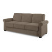 Give your seating ensemble a stylish, yet functional foundation with this streamlined sleeper sofa. Founded on a sturdy wood frame, this sofa features a slightly slanted backrest, two flared track arms, and four tapered dowel legs. Brushed microfiber upholstery envelops the whole sofa, accented by baffle box stitching and cushioned for comfort and support. A pair of matching toss pillows rounds out the design. Expecting overnight guests? This design easily unfolds flat to convert to a sleeper sofa!