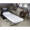 Multiple uses for this Sleeping Ottoman! Casters allow easy movement from room to room. No blowing up mattresses or unfolding chairbeds, sleepovers are a breeze with this super comfortable ottoman that transforms into a twin visco-elastic foam sleeper with gel infused topper that is really comfortable. The gel infused topper is to keep you cool while you sleep. Serves as soft bench when closed with it’s sturdy, cushioned top. As an ottoman, no worries when a friend arrives with dirty shoes or feet! Wipes clean with mild soap and water.